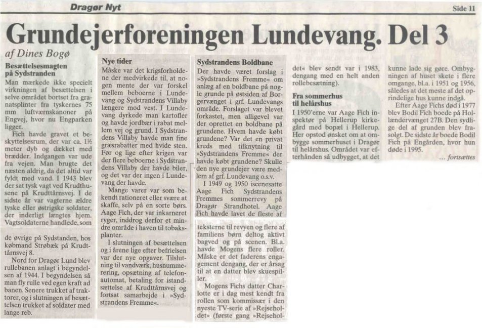 Artikel i Dragør Nyt, 21. januar 2003. U